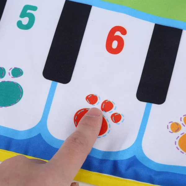 سفره دارای کلیدهای بزرگ پیانو با اعداد و رنگهای متنوع است که به کودکان امکان یادگیری نتها و نوازندگی ابتدایی را میدهد.