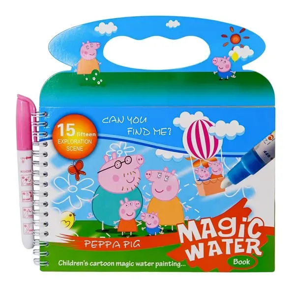 دفتر جادویی نقاشی یک بازی آموزشی بسیار عالی برای کودکان است که باعث افزایش مهارت رنگ آمیزی و نقاشی آنها می شود. این دفتر دارای چهار صفحه نقاشی با طرح های متفاوت است که با قلم مخصوص خود باید رنگ آمیزی شود.رنگ آمیزی به این گونه است که داخل قلم مخصوص دفتر مقداری آب ریخته و با کشیدن قلم بر روی صفحه رنگ آن نمایان می شود و بعد از چند ساعت رنگها از بین رفته و مجددا قابل استفاده و رنگ آمیزی است.