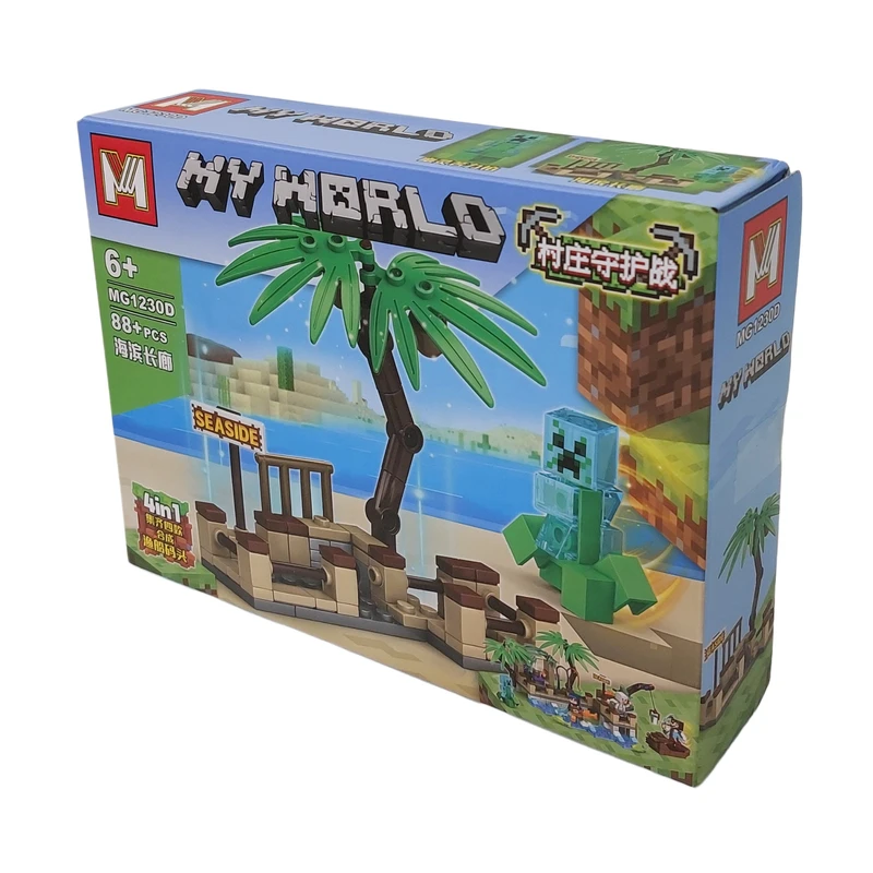 ساختنی مینگ جی مدل ماینکرفت کد MG1230D 🏝️💥 با ۸۸ قطعه رنگارنگ، شخصیت فانتزی جزیرهای 🏄♂️🐠🎣 و دفترچه راهنما، تجربهای شاداب و خلاقانه به ارمغان میاره 🌈🎉🟩