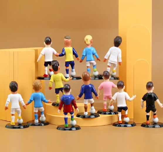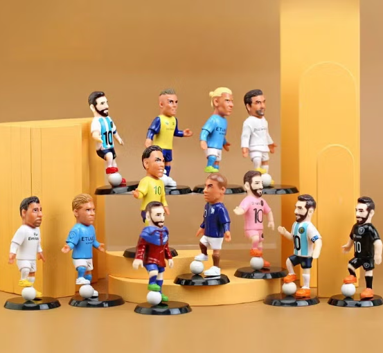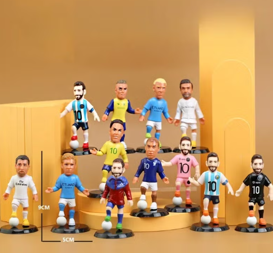 مجموعهی ۱۲ عددی فیگورهای کارتونوار فوتبالیستهای اروپایی، شامل بازیکنان معروف مثل مسی، کریستیانو رونالدو و دیگر ستارهها؛ طراحی شده به سبک کارتونی اما با جزئیات دقیق لباس، ژست و حالتهای حرکتی ⚽